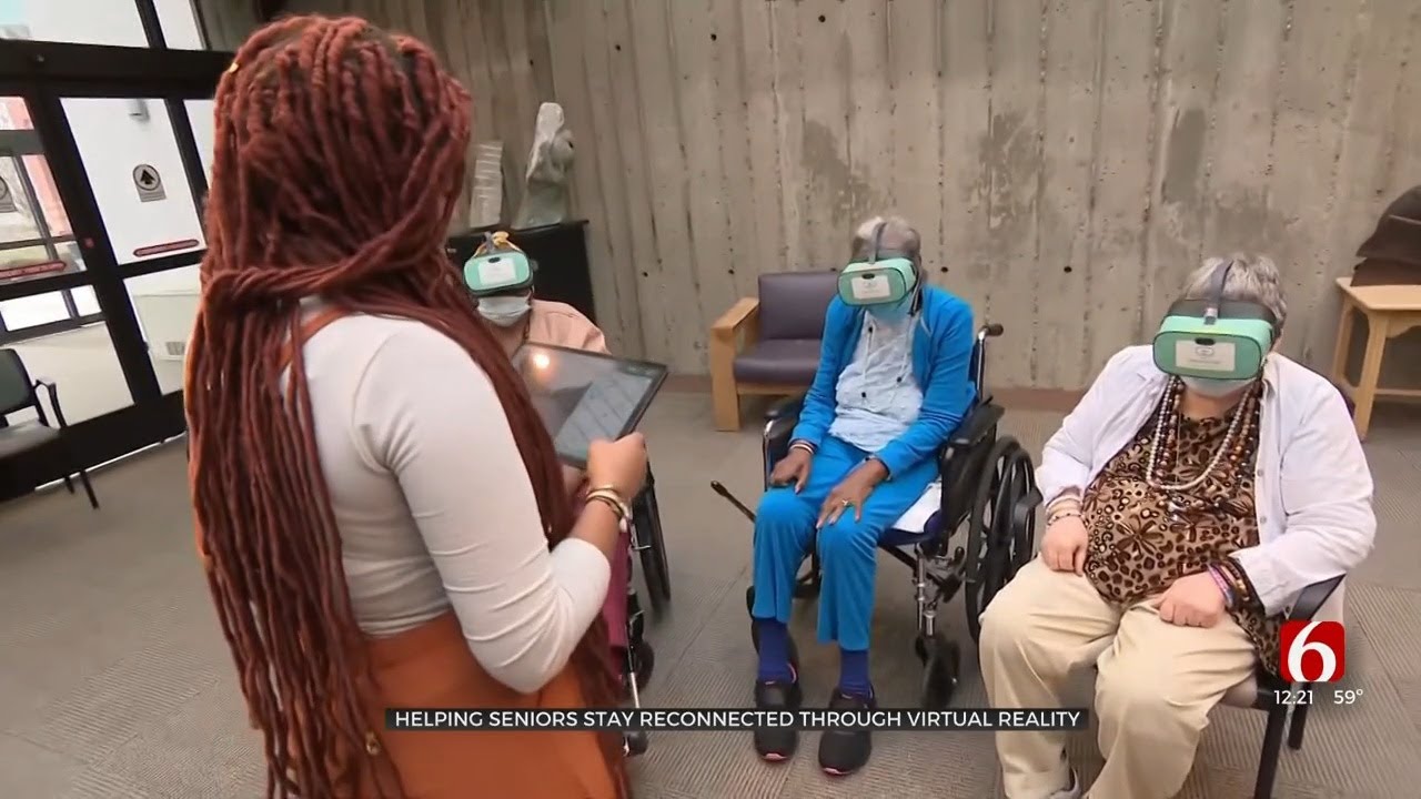 The VR content is curated by companies like Rendever, which focuses on group VR experiences designed for older adults.